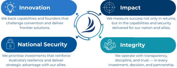 This model allows us to direct capital into ventures that deliver shorter-cycle capabilities, maintain the technological edge of Australia and its allies, and pursue risk-adjusted returns while reshaping the Defence Industrial Base.